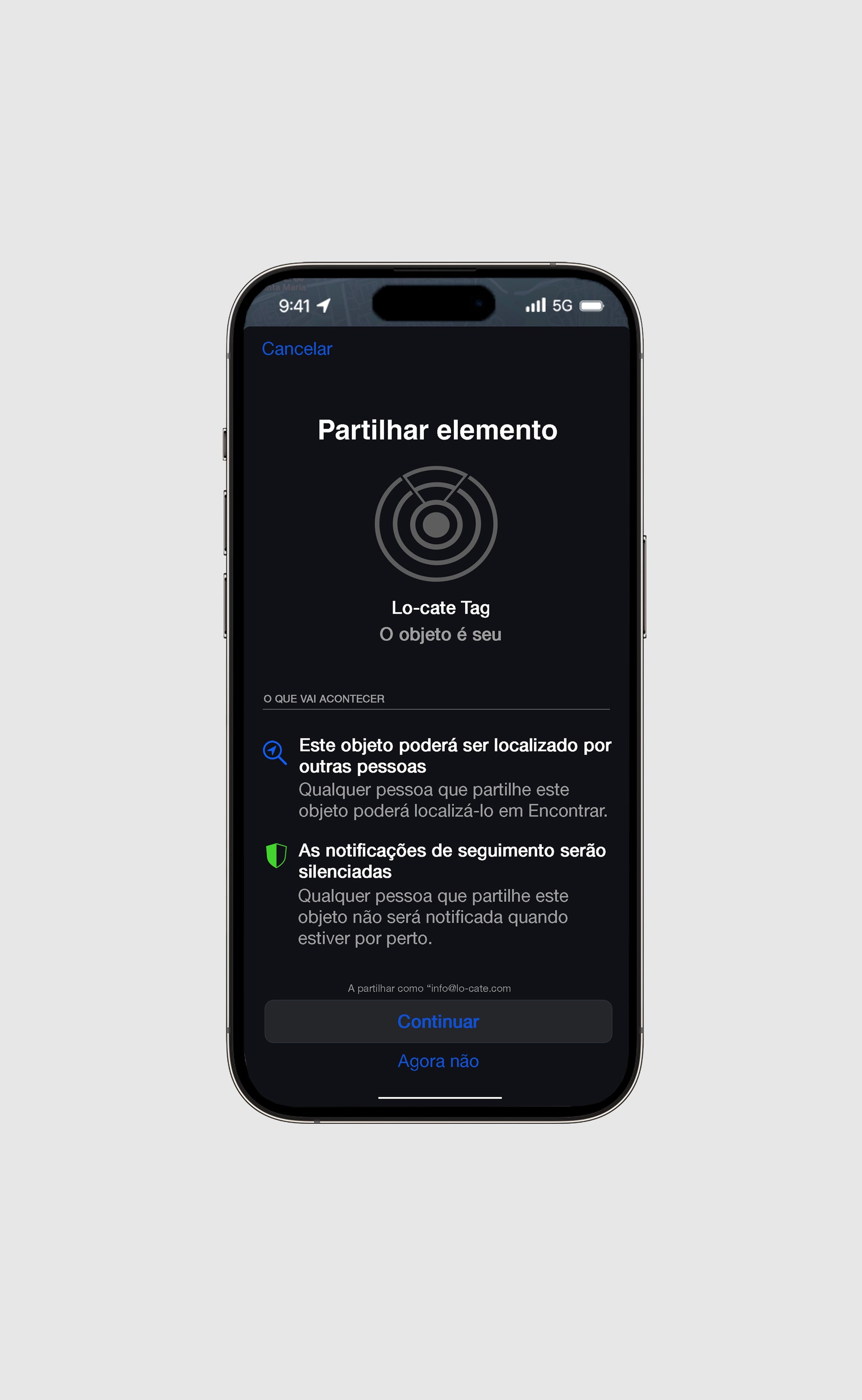 O Lo-Cate utiliza o serviço “Encontrar” da Apple (Find My) e liga-se à rede global de dispositivos Apple para mostrar a localização do seu localizador.