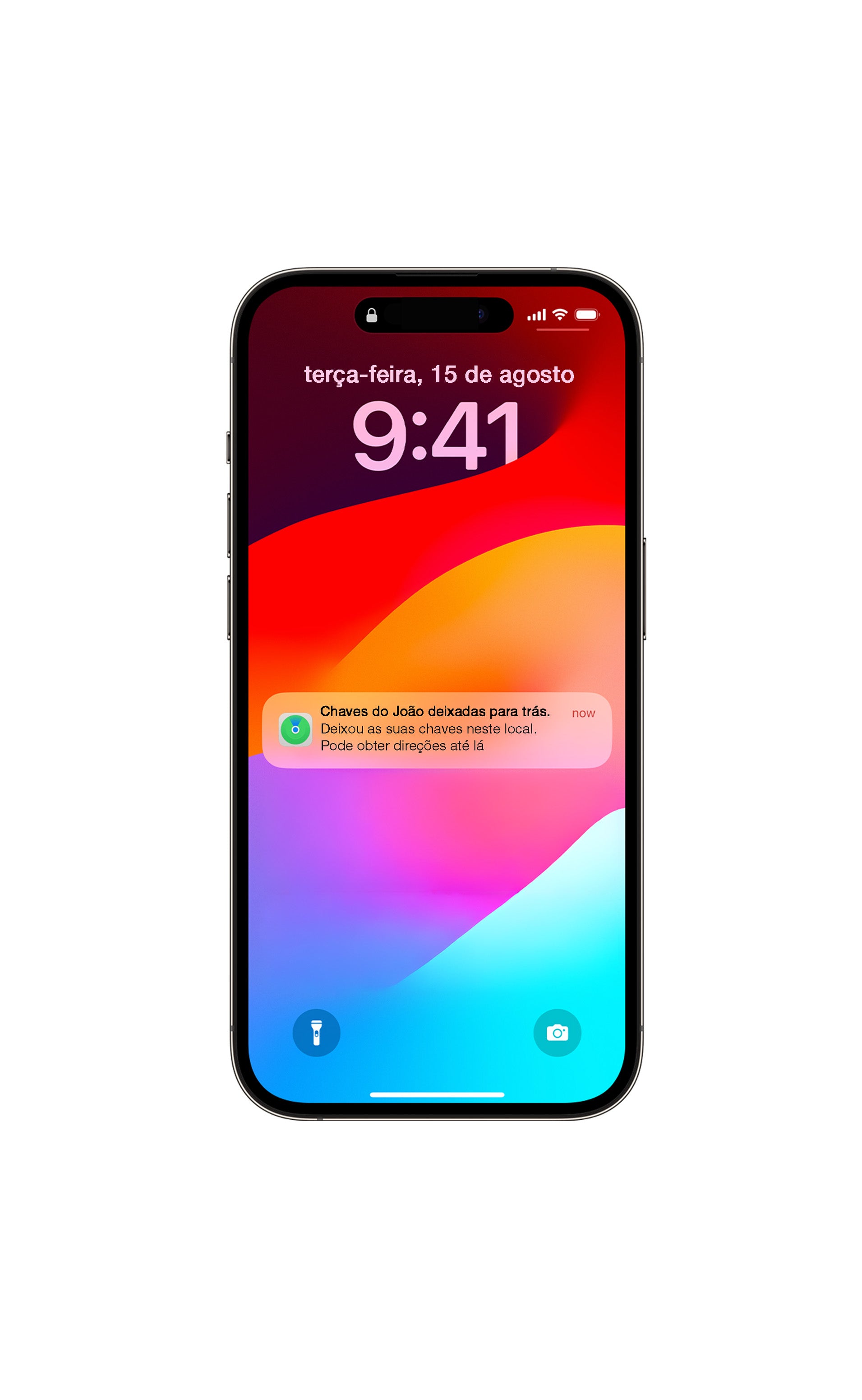 No iPhone, liga-se à app Encontrar (Find My) da Apple e utiliza a rede global de dispositivos Apple para mostrar a localização.