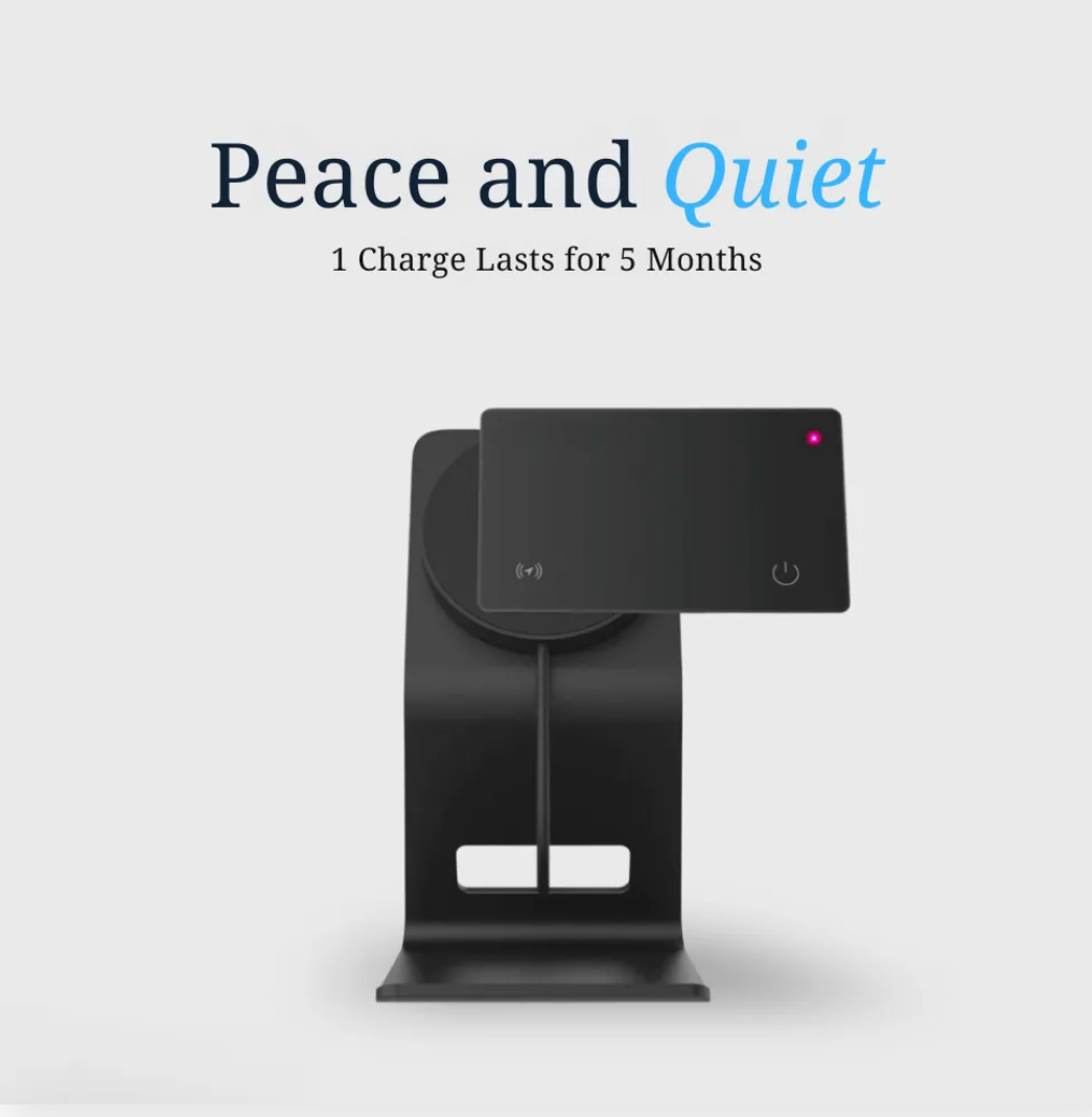Powered by a replaceable CR2032 coin battery for extended life — no recharging required.